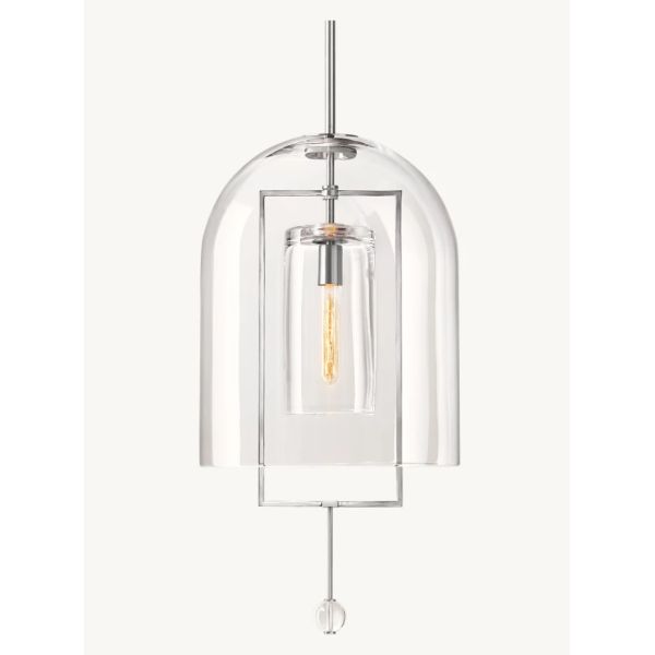 Antique scales and other instruments of measure inspired this collection by master glass designer Alison Berger, in which cloches and spheres of blown glass are suspended from metal frames in perfect equipoise. Blurring the line between lighting and sculpture, each piece acts as a radiant focal point and a potent symbol of balance.